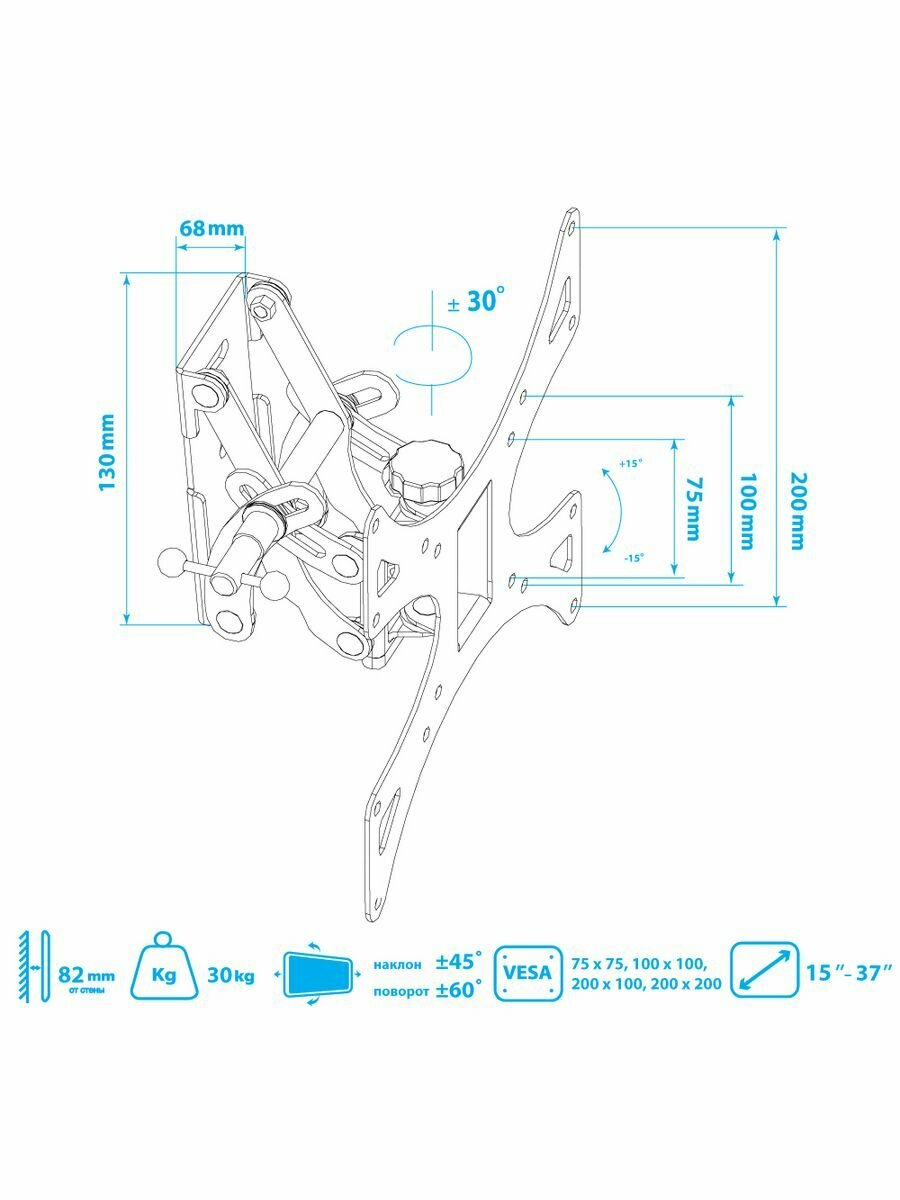 Кронштейн для телевизора Arm Media LCD-301, 15-37", настенный, поворот и наклон, белый [10081]