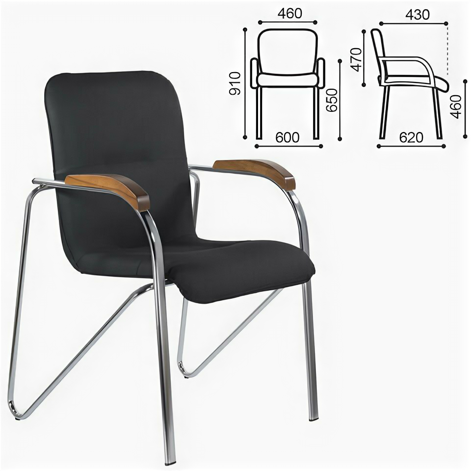 Кресло для приемных и переговорных BRABIX "Samba CF-105 BOX-2", хром, орех (D-8), черный, разобрано, 532761