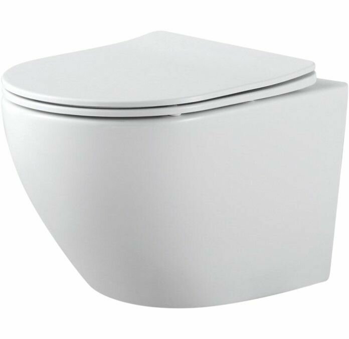 Унитаз подвесной Keramastar Supra 495х365х375 безободковый с тонким быстросъемным сиденьем дюропласт KR064011P