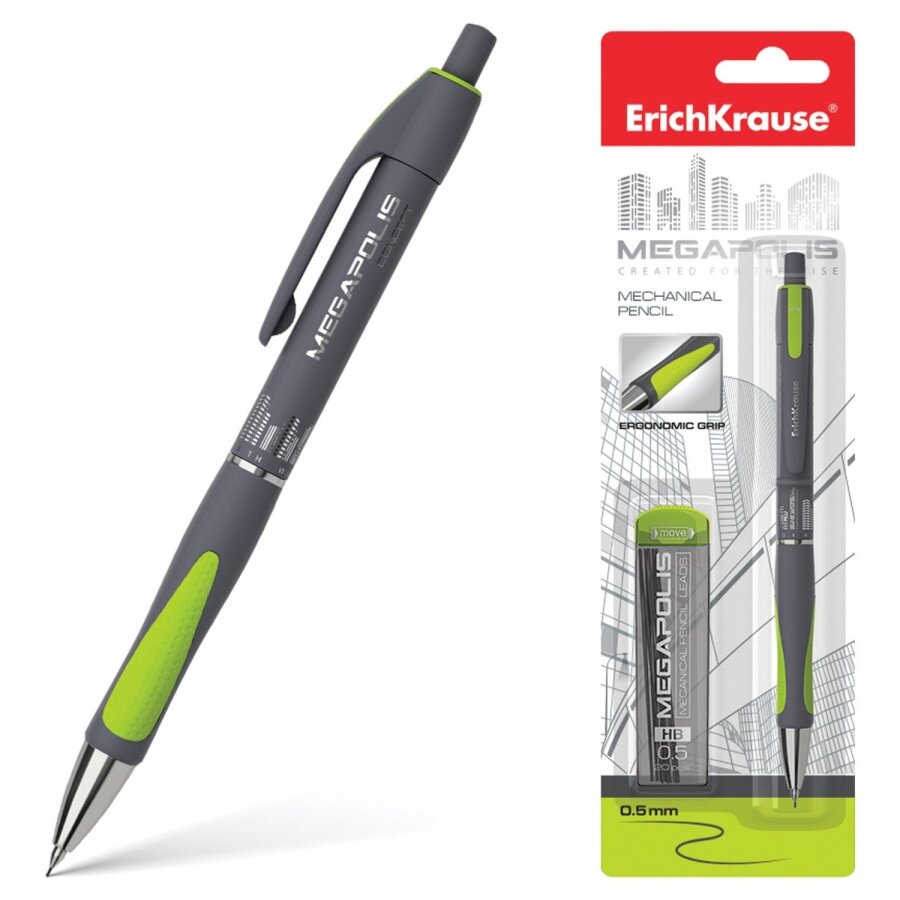 Купить Набор Erich Krause Megapolis concept: карандаш механический 0.5 мм + сменные грифели, в блистере