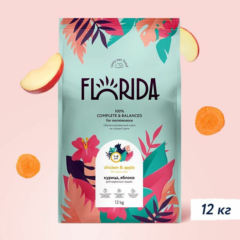 FLORIDA корм для взрослых кошек с курицей и яблоком 12 кг. х 1 шт.