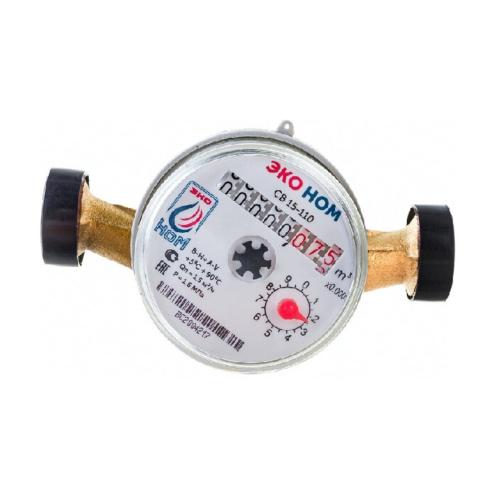 Купить ЭКО НОМ Счетчик воды "ЭКО НОМ" СВ-15-110, универсальный, 1/2", с обратным клапаном, с комплектом присоединения