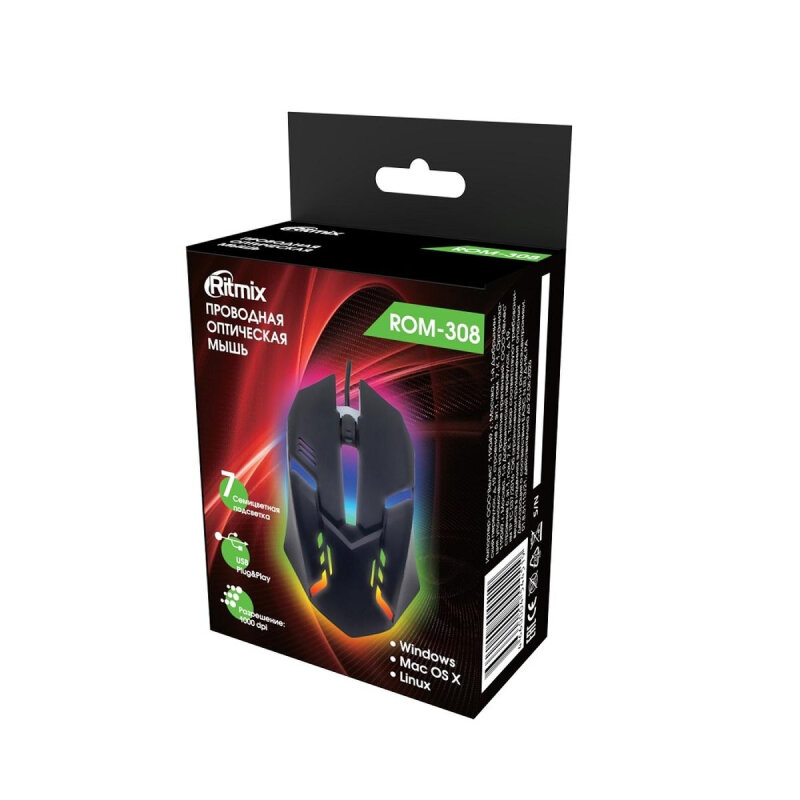 Мышь компьютерная RITMIX ROM-308 1000 dpi, подсветка, 3кн. (80001671) интересное: