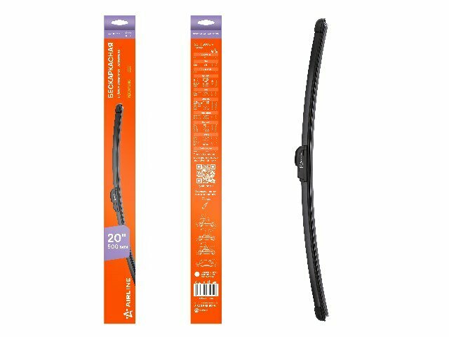 Щетка стеклоочистителя 500мм (20') бескаркасная, 1 адаптер (Hook 9x3, 9x4 mm - Крючок 9x3, 9x4 мм) (AWB-BKP-510) AIRLINE