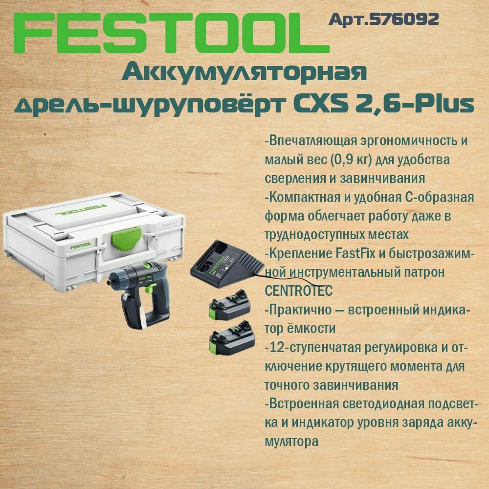 Аккумуляторная дрель-шуруповёрт Festool CXS 2,6-Plus 576092