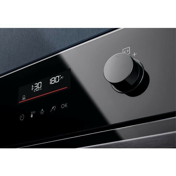 Встраиваемая электрическая духовка Electrolux с паром SteamBake, 72 литра, основной цвет - чёрный, утапливаемые переключатели, таймер отключ