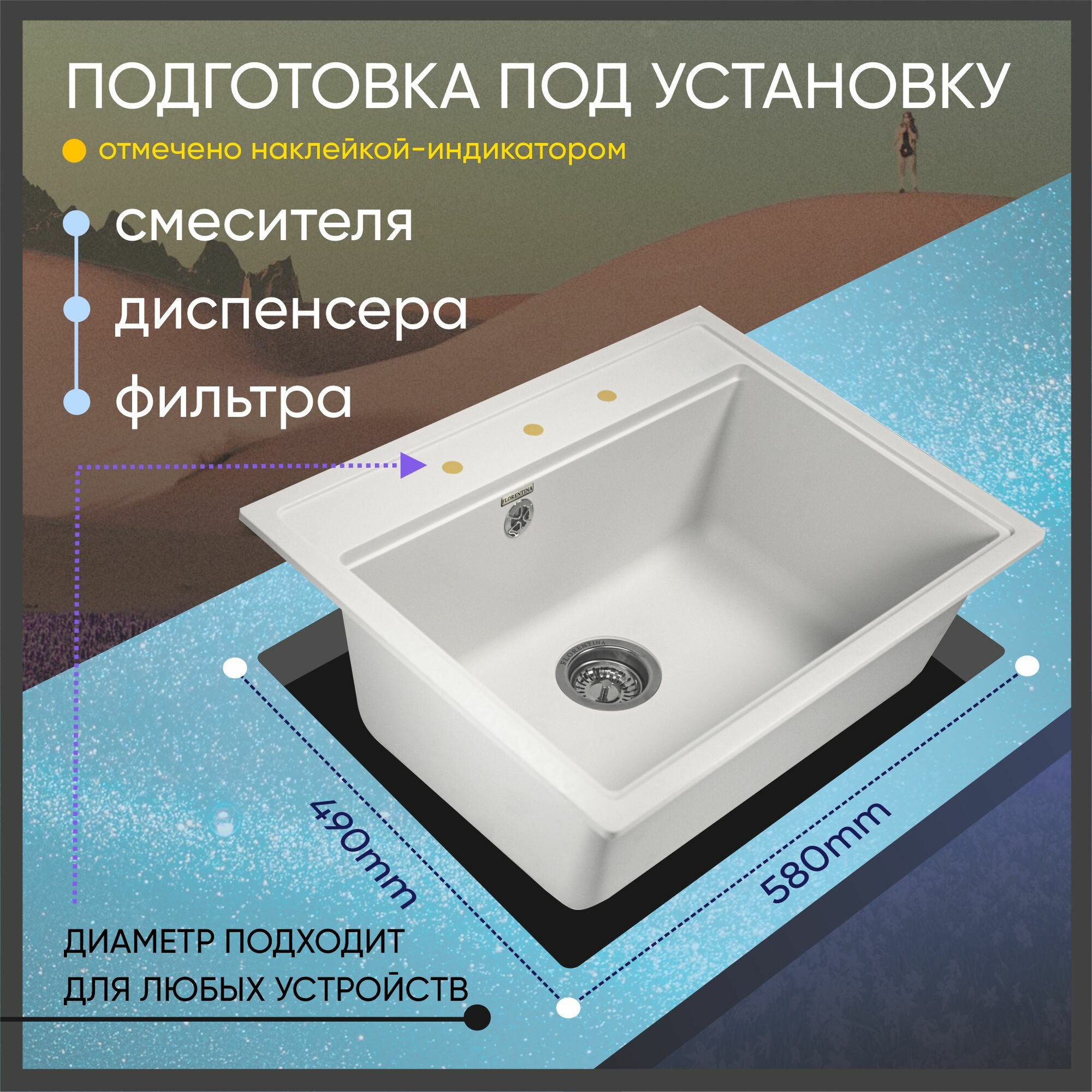 Кухонная мойка Карельский камень модель 150 (575*470) Q6 Слоновая кость