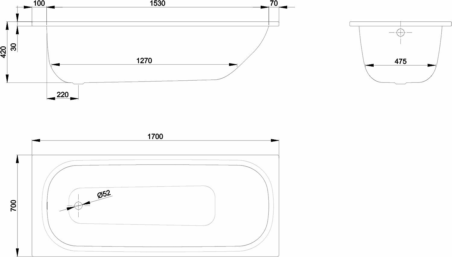 Купить BETTE Form 2020 Ванна 1700х700х420 мм., с системой антишум, BetteGlasur® Plus, BetteАнтислип, цвет белый
