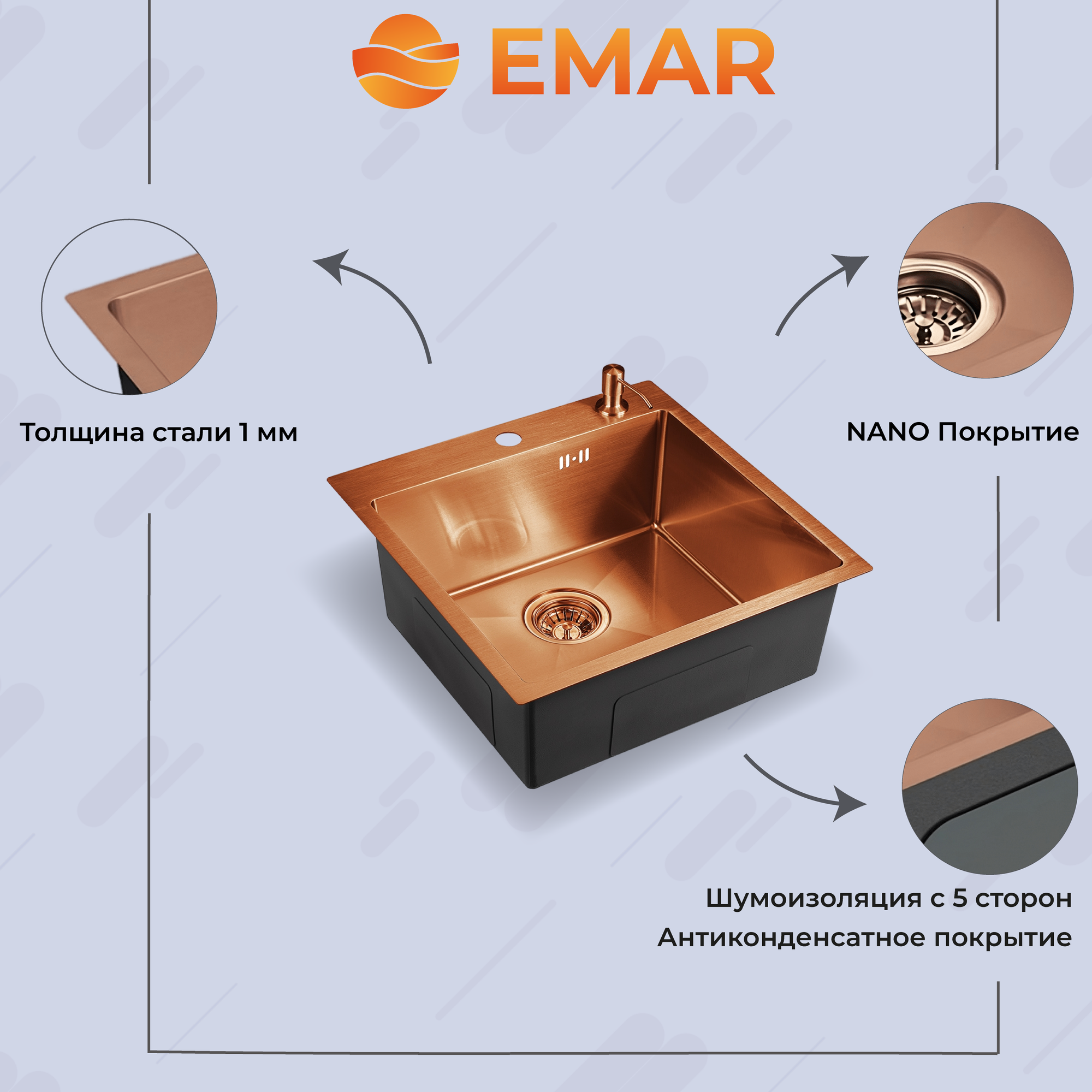 Мойка для кухни EMAR EMB-117A PVD Nano Coppery интересное: