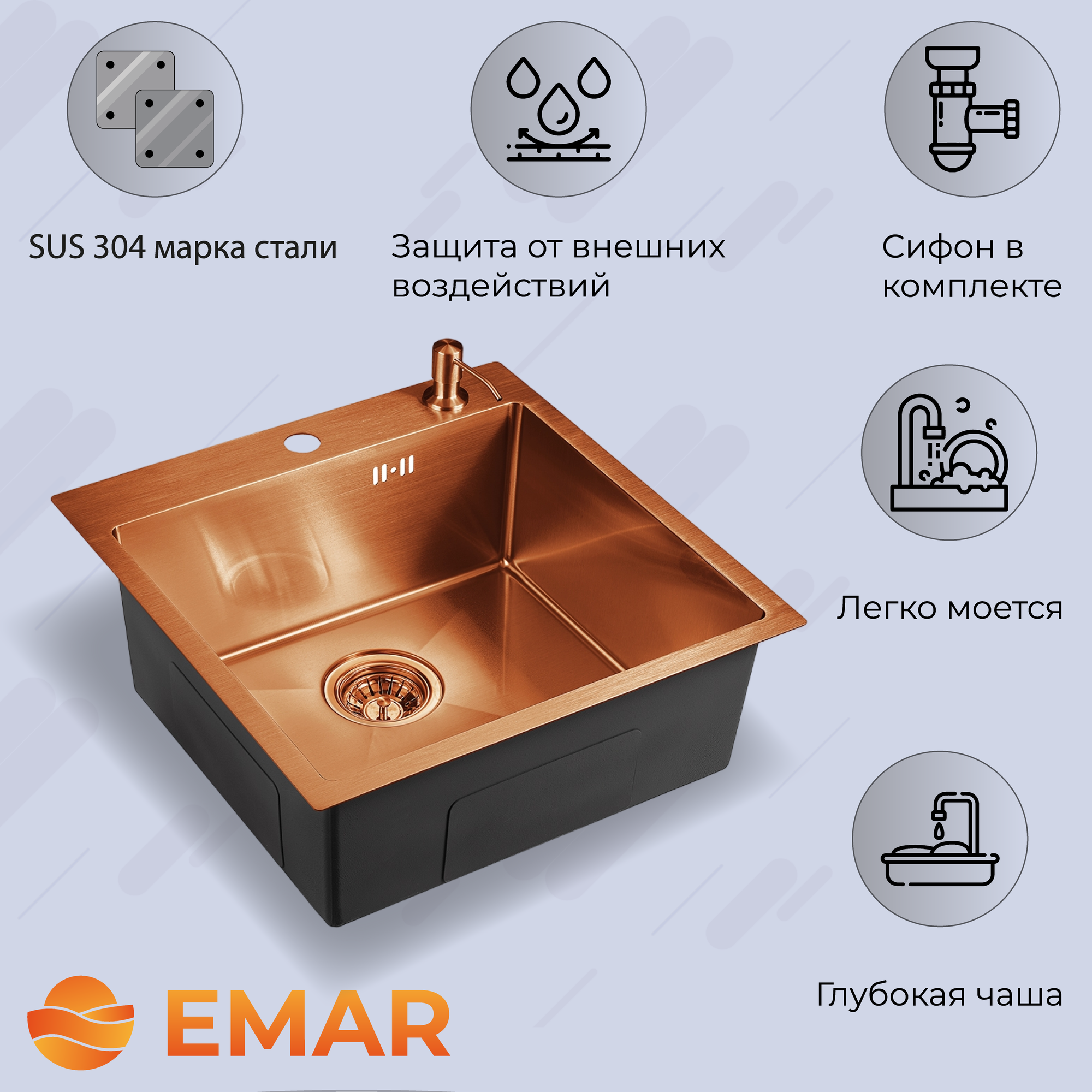 Мойка нержавеющая EMAR 500х500 мм EMB-117А PVD Nano Coppery
