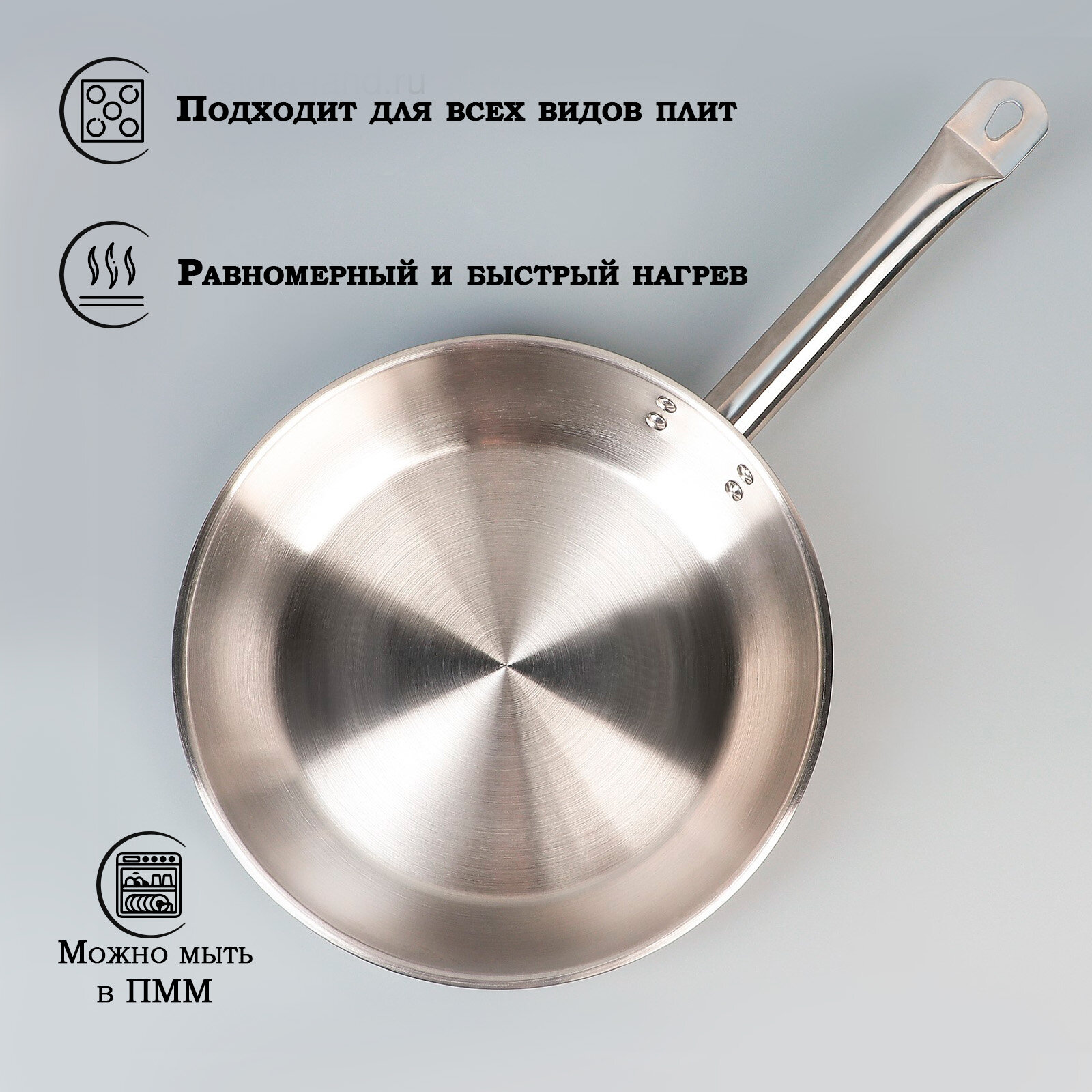 Сковорода из нержавеющей стали «Общепит», d=34 см, толщина корпуса 0,6 мм, дно 3,5 мм, капсульное дно, индукция