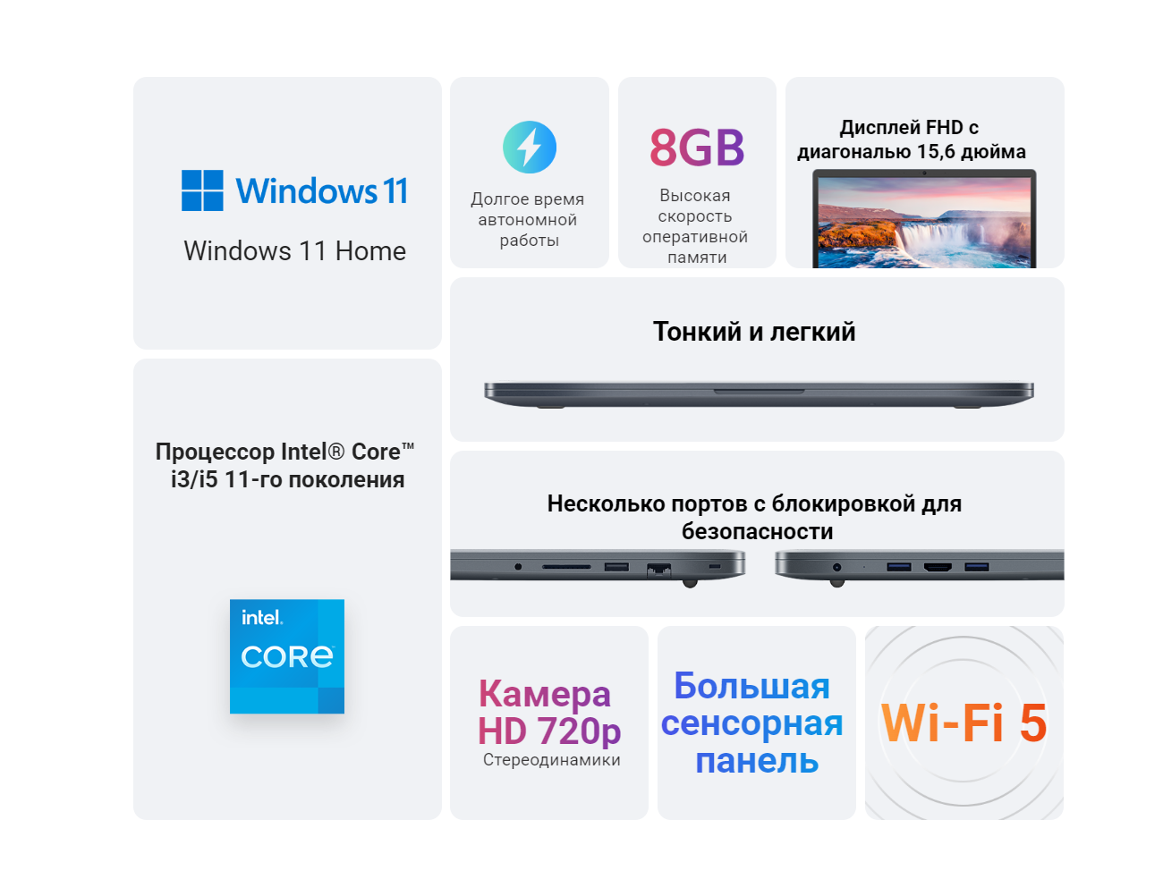 Сохранить15.6" Ноутбук Xiaomi RedmiBook 15 1920x1080, Intel Core i3 1115G4 3 ГГц, RAM 8 ГБ, DDR4, SSD 256 ГБ, Intel UHD Graphics, Windows 11 Home, JYU4525RU, серый интересное:
