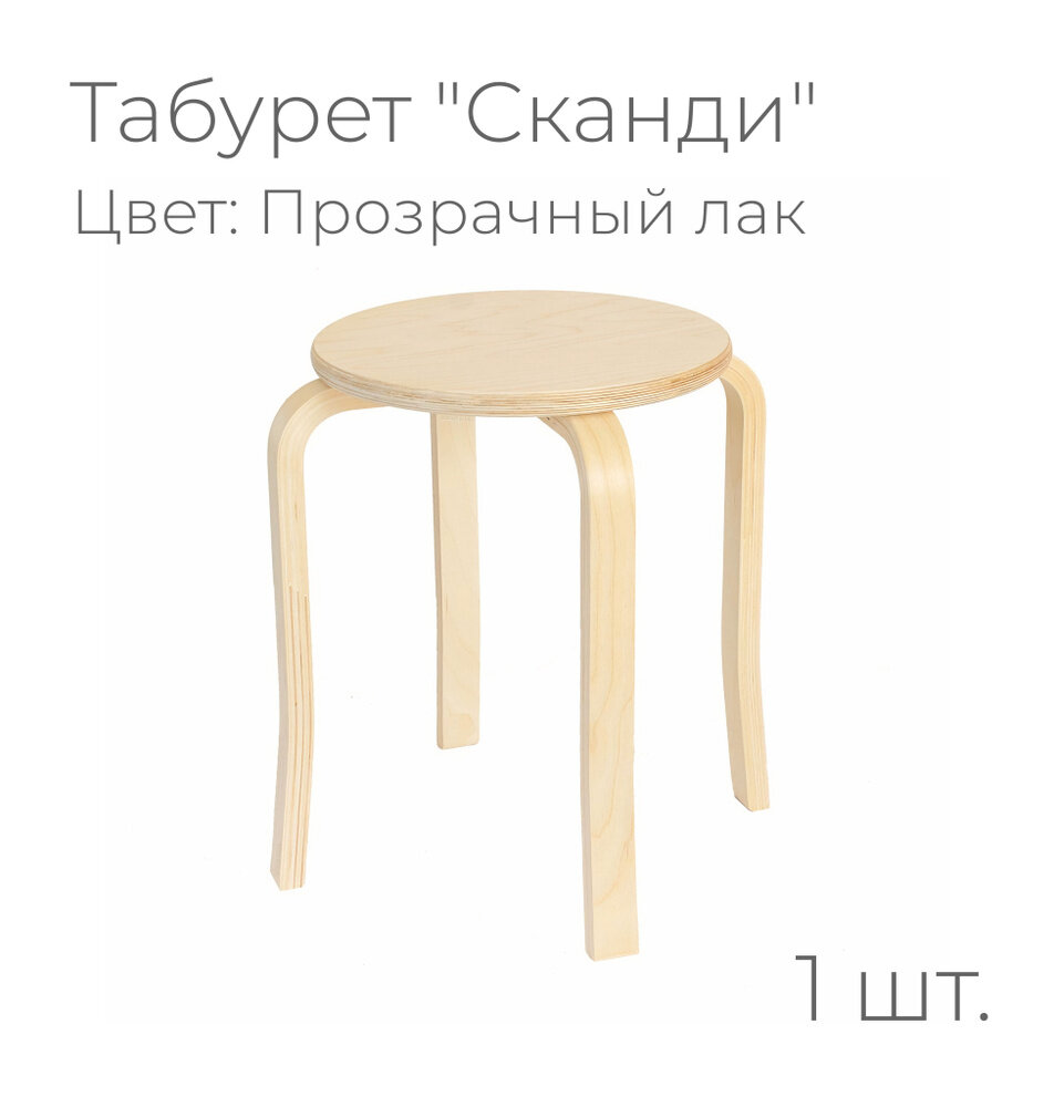 Табурет «Сканди», цвет: прозрачный лак (круглый, для кухни, табуретка, деревянный) интересное: