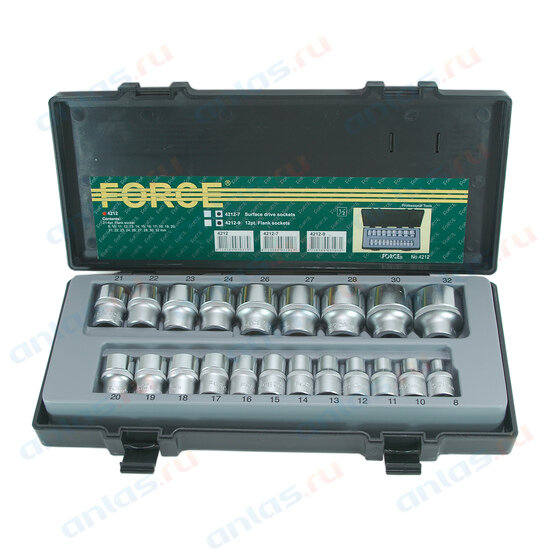 FORCE 42129 4212-9 1/2'' набор головок 21ПР. 8-32ММ 12ГР. ''FORCE'' тайвань, страна ввоза РФ 1шт
