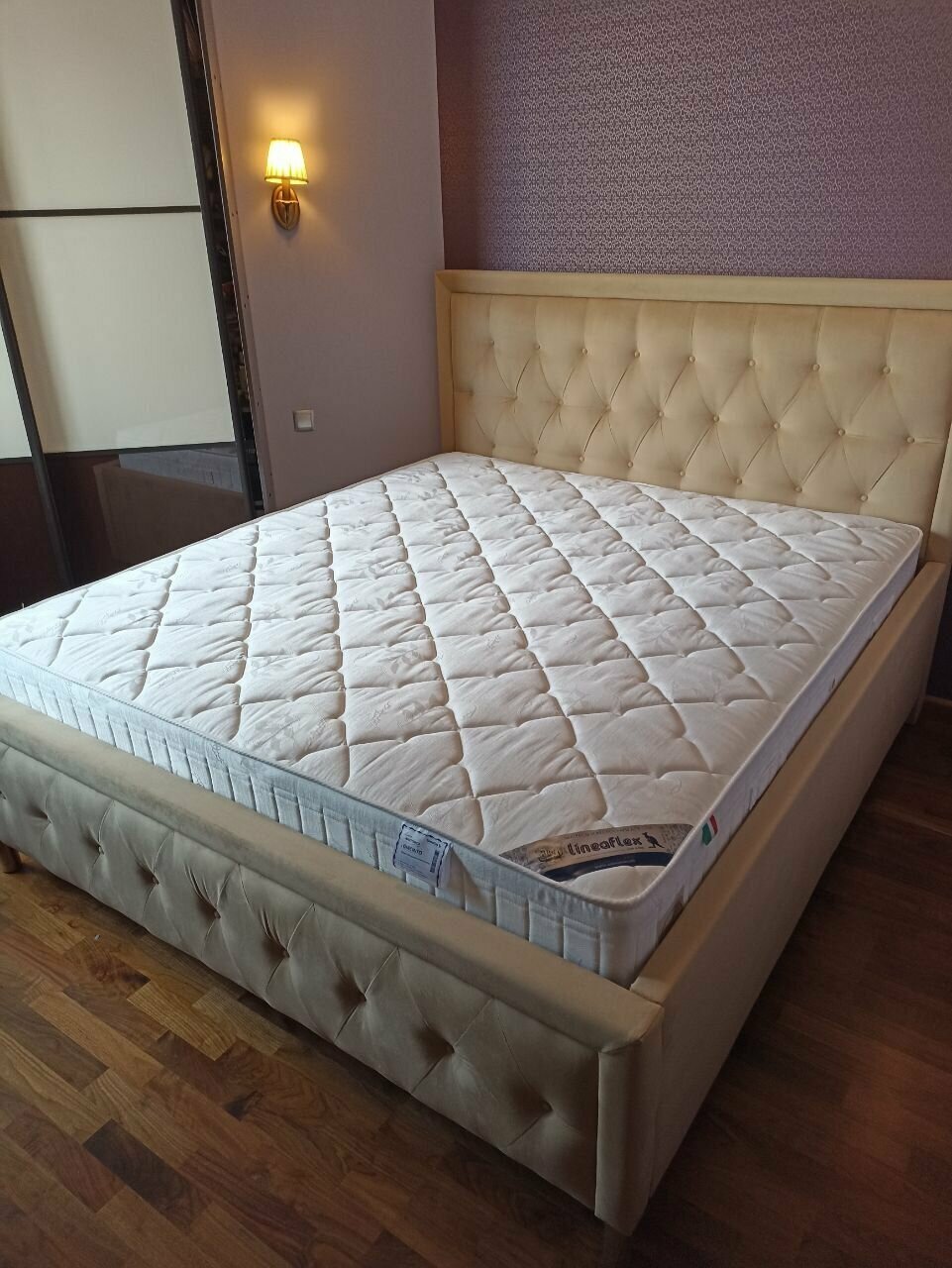 | Минусы: | Матрас крайне низкого качества. Прогибается под весом в 40 кг, на фото сидит ребёнок. Если садиться на край, то матрас сжимается в три раза и сидеть на нём неудобно, скатываешься. |