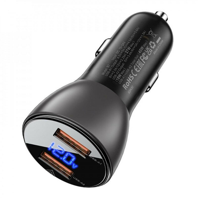 Автомобильное зарядное устройство ACEFAST B7 metal car charger 45W USB-A + USB-A with digital display