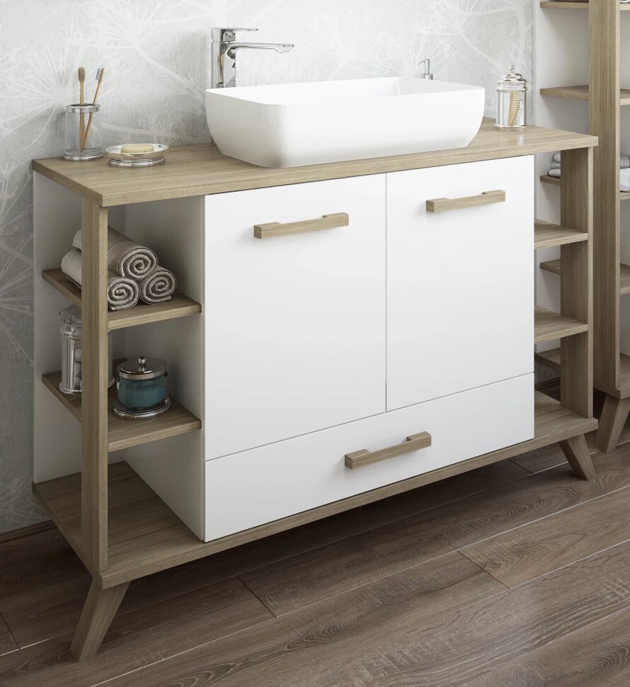 Тумба с раковиной белый матовый/вяз швейцарский 120 см Sanflor Ингрид C12472 интересное: