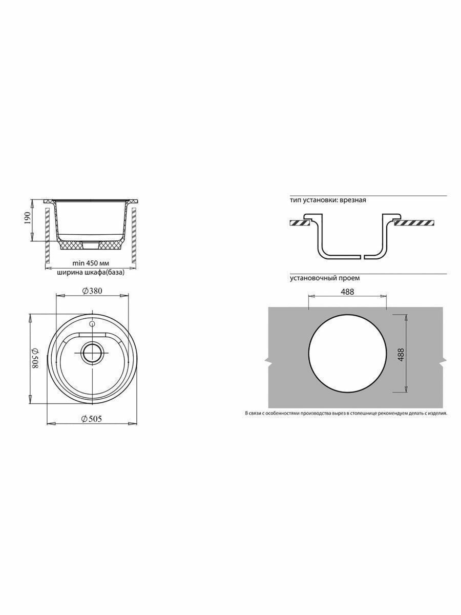 Мойка GRANFEST GF-R510 D =510 мм, круглая (топаз)