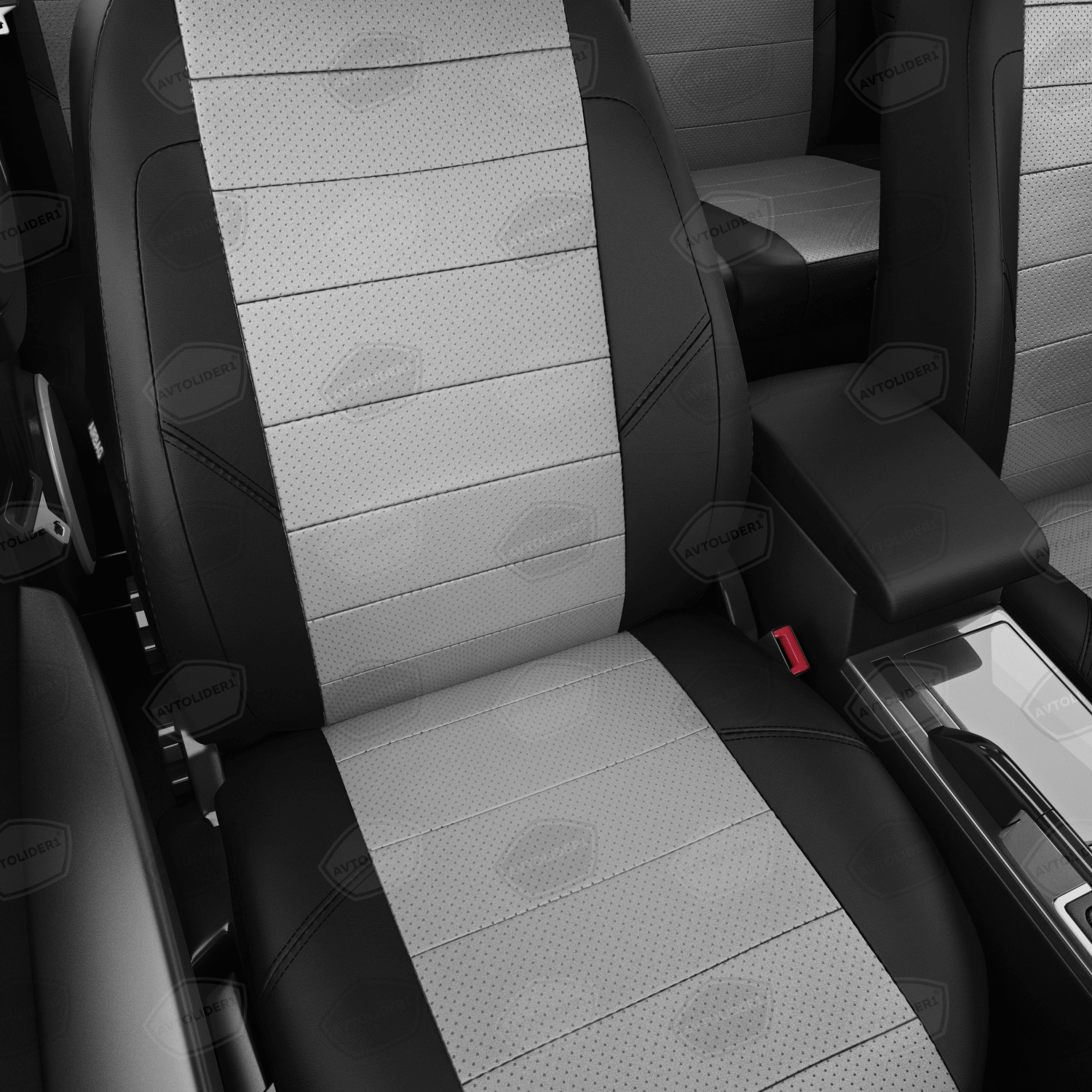 Комплект каркасных чехлов 5D CarFashion Consul Plus, чёрные, отстрочка серая