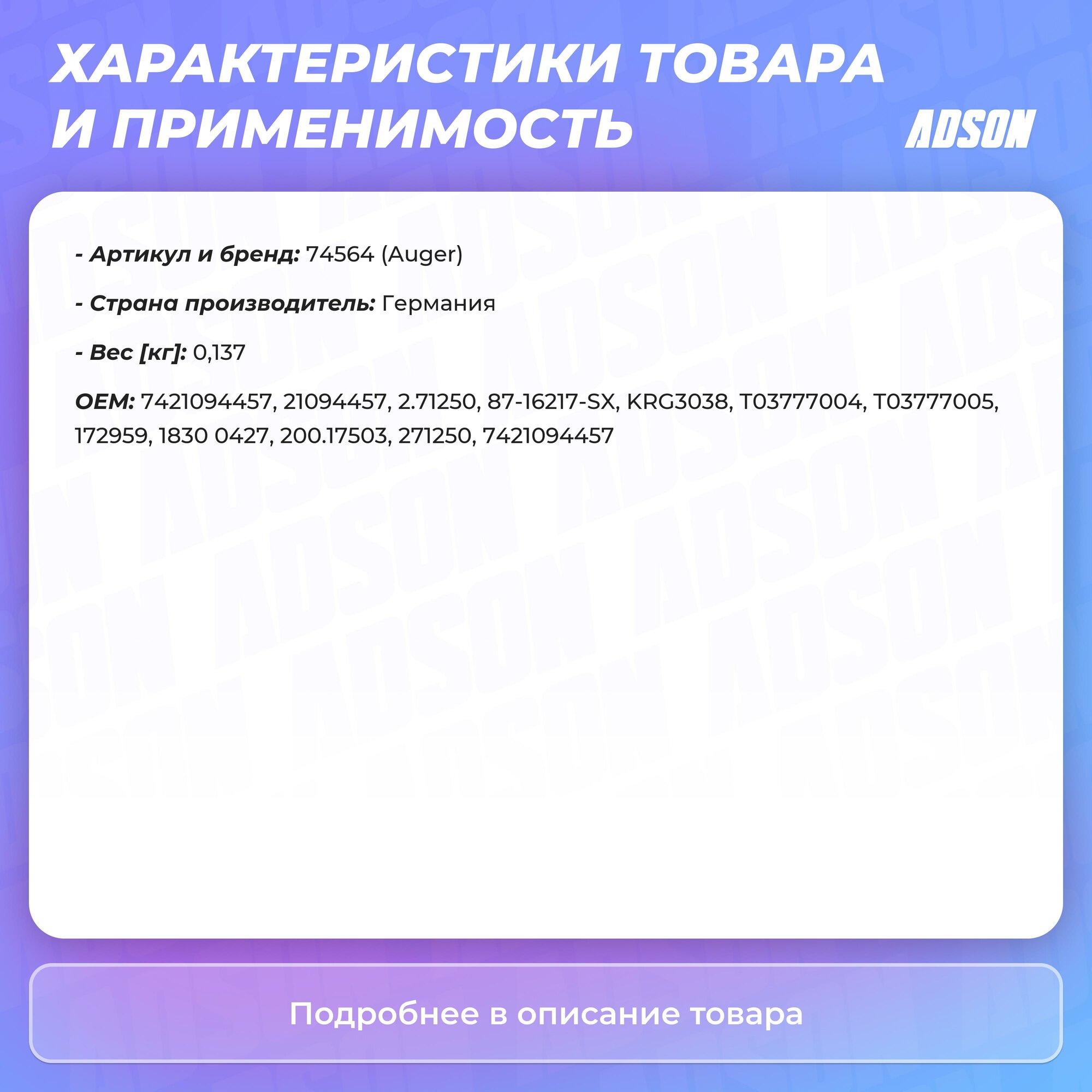 Резинка Крепления Крыла Брызговика Hcv AUGER арт. 74564