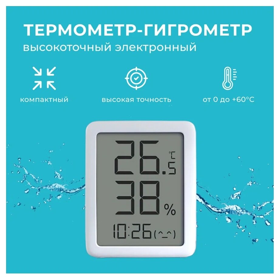 Метеостанция с часами, термометр-гигрометр Miaomiaoce LCD (MHO-C601), белый