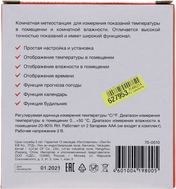 Ниже Вы можете прочитать отзывы на Комнатная метеостанция с подсветкой REXANT 70-0510, ознакомится с подробными характеристиками, посмотреть интересные обзоры и фотографии на Комнатная метеостанция с подсветкой REXANT 70-0510.