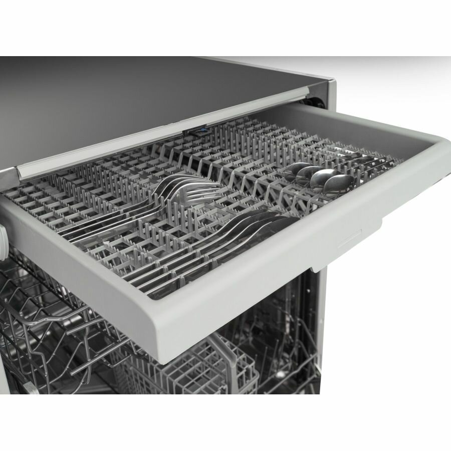 | Плюсы: | Внутреннее расположение подставок очень удобное, при загрузке или выгрузке не бьется посуда друг от друга, а так же удобная пластиковая подставка под вилки ложки ножи и тд, можно ее в самом конце отдельно поставить и все помоется. Качество мойки хорошее, при относительно небольшом уровне шума, из комнаты ничего не слышно, но на кухне есть чуть. |