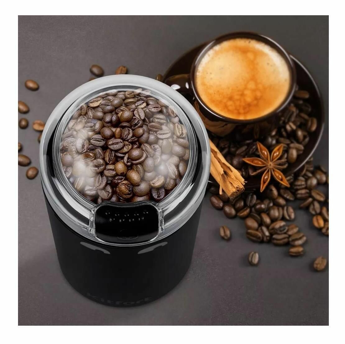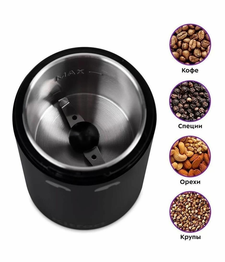 Кофемолка Kitfort КТ-7116 200Вт сист.помол.:ротац.нож вместим.:40гр черный интересное: