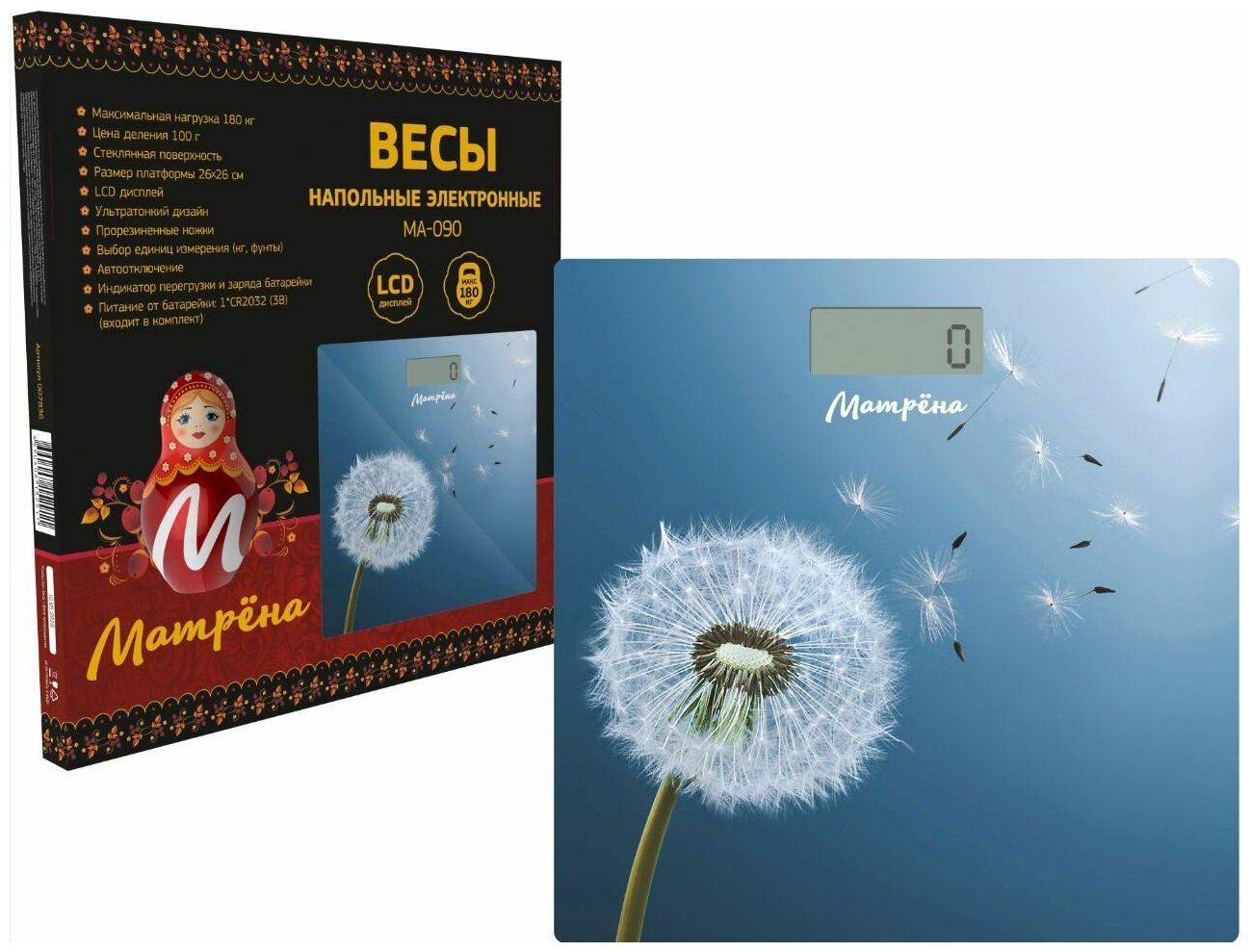 Весы напольные электронные матрёна МА-090 одуванчик (стеклянная поверхность, 180 кг)