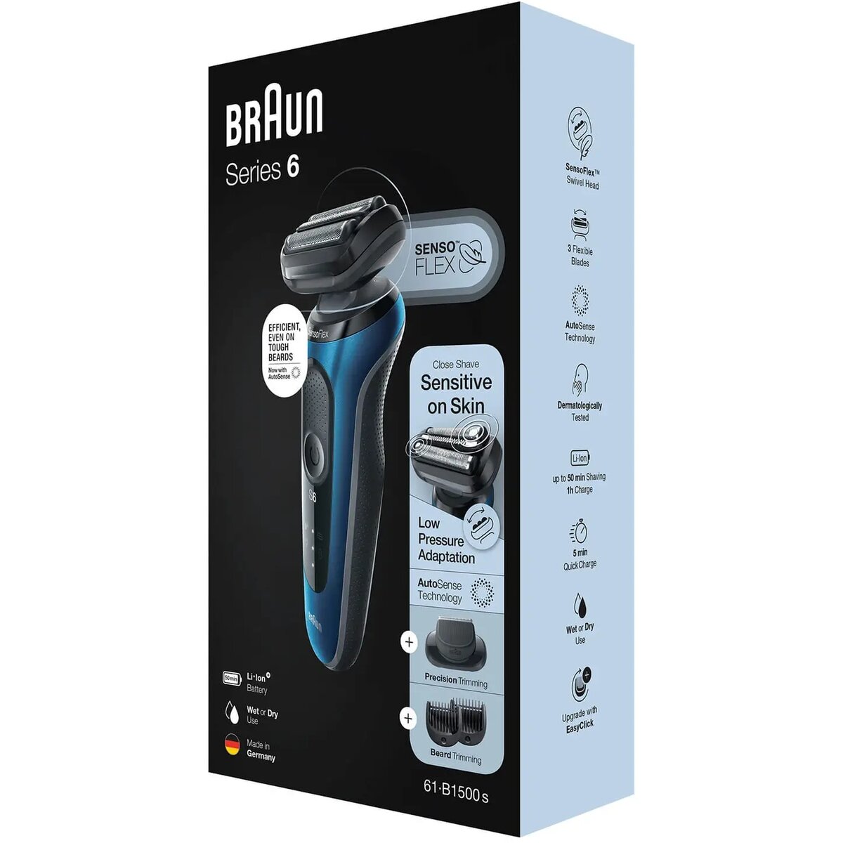 Электробритва Braun Series 6 61-B1500S, черная/синяя