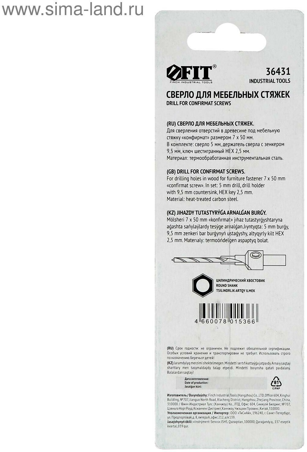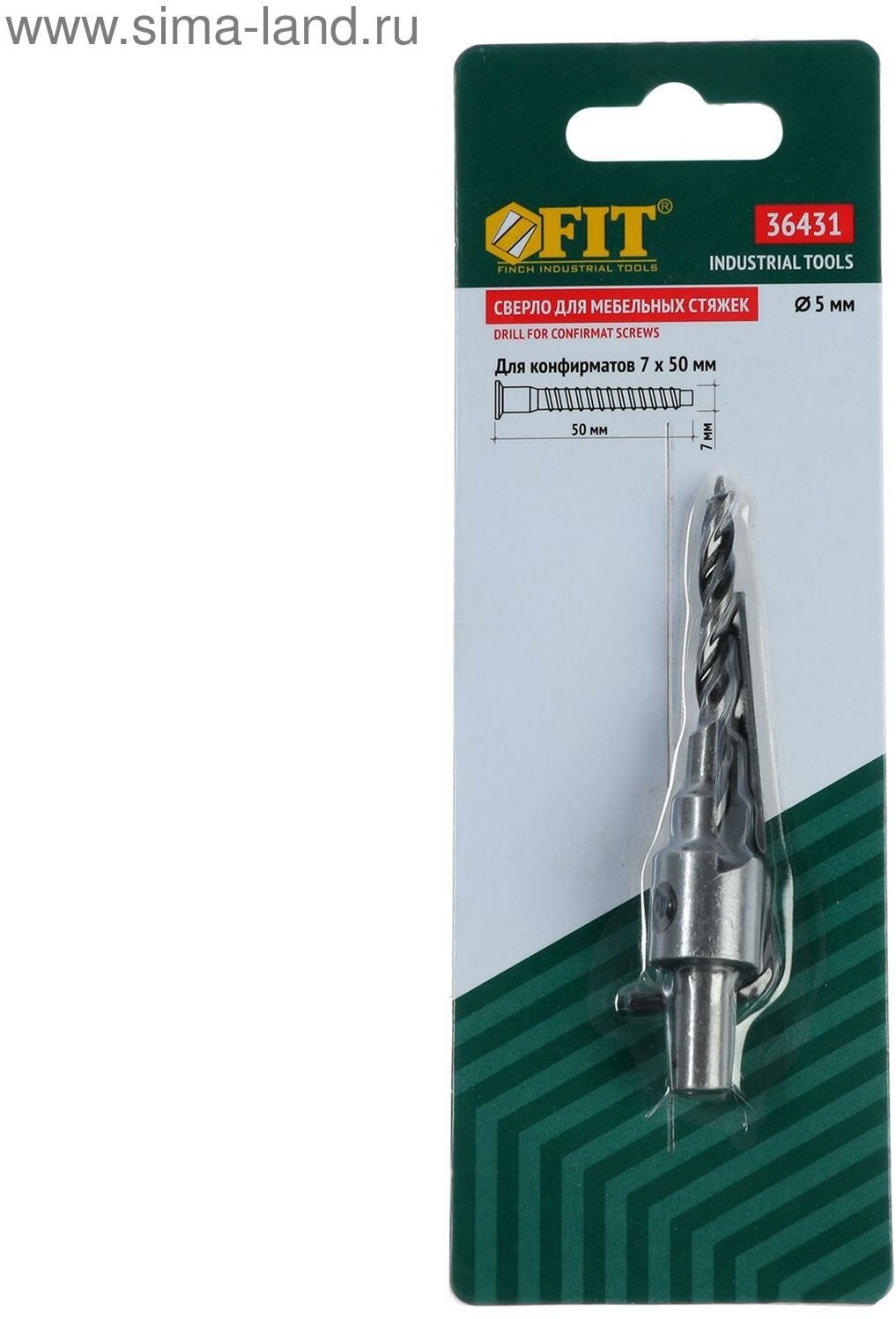 Сверло под конфирмат FIT 36431, для мебельных стяжек, 5 мм/зенкер 9.5 мм, для стяжки 7х50