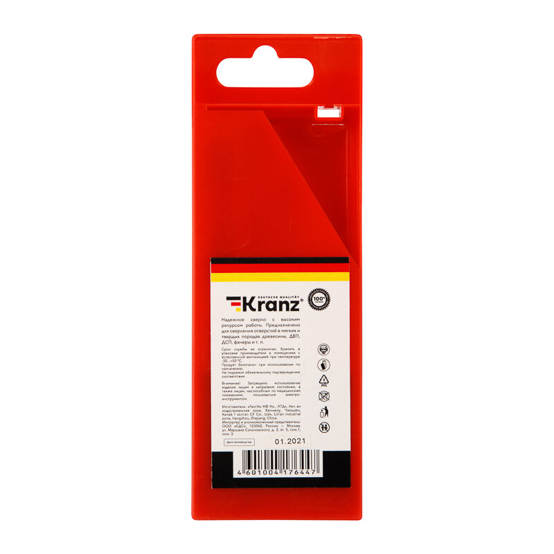 Универсальный набор сверл по разным видам древесины KRANZ 4-10 мм, 5 штук в пластиковой упаковке