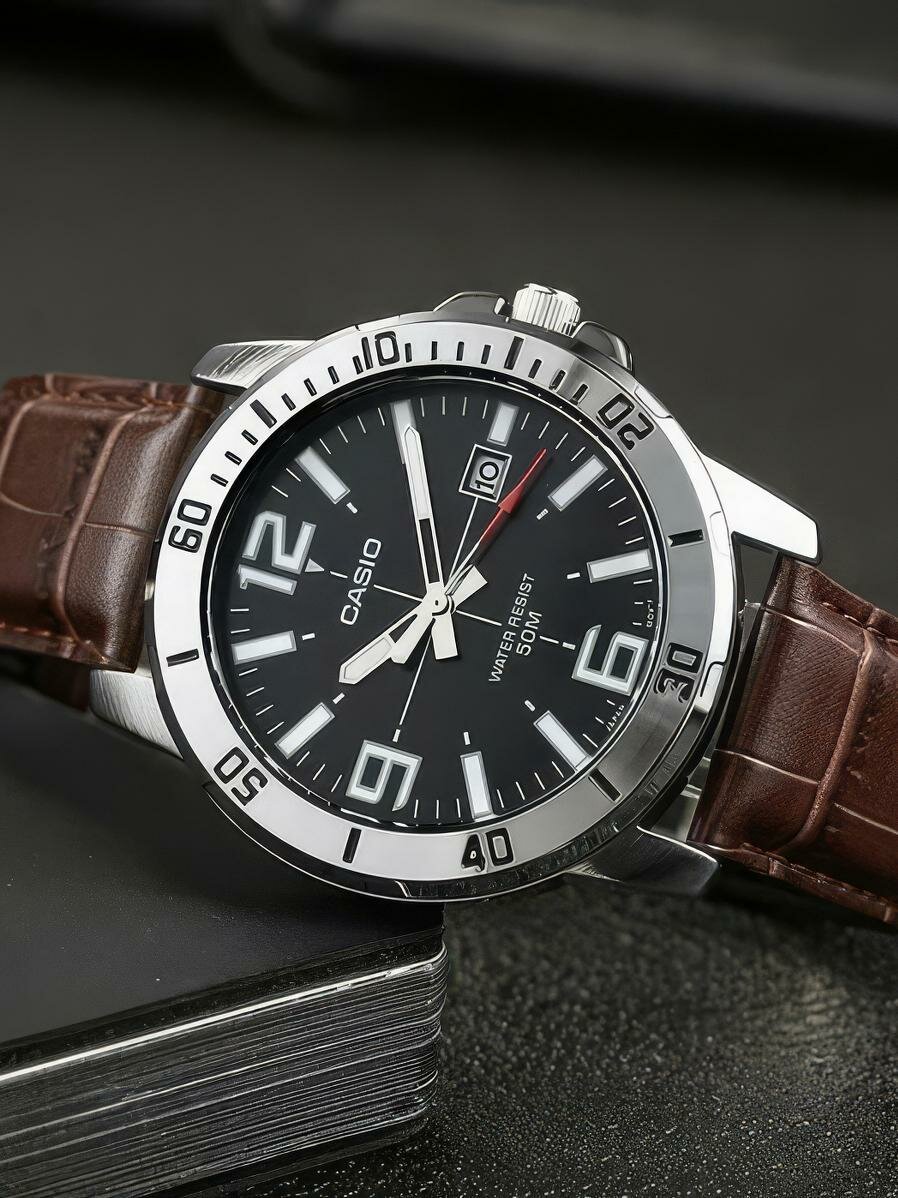 Наручные часы CASIO MTP-VD01L-1B кварцевые, водонепроницаемые, подсветка стрелок, серебристый/черный