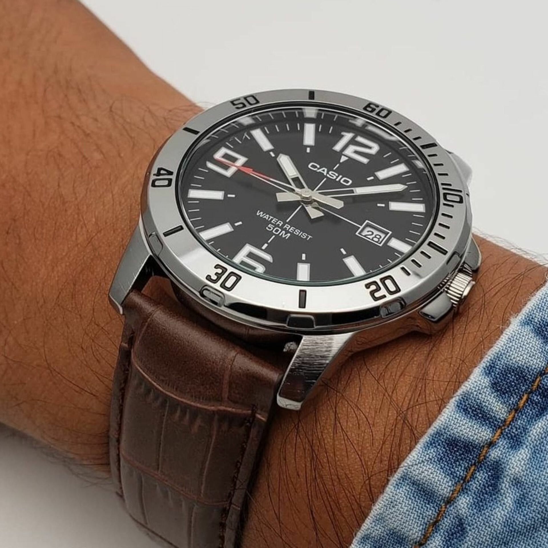MTP-VD01D-7C Casio наручные часы кварцевые WR50 (5 атм) мужские серебряный, серый отображение числа подсветка стрелок минеральное стекло