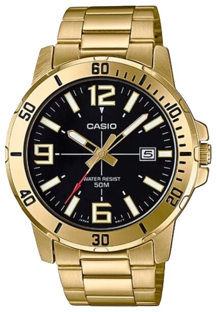 Наручные часы CASIO MTP-VD01G-1B кварцевые, водонепроницаемые, подсветка стрелок, бесшумный механизм, золотой