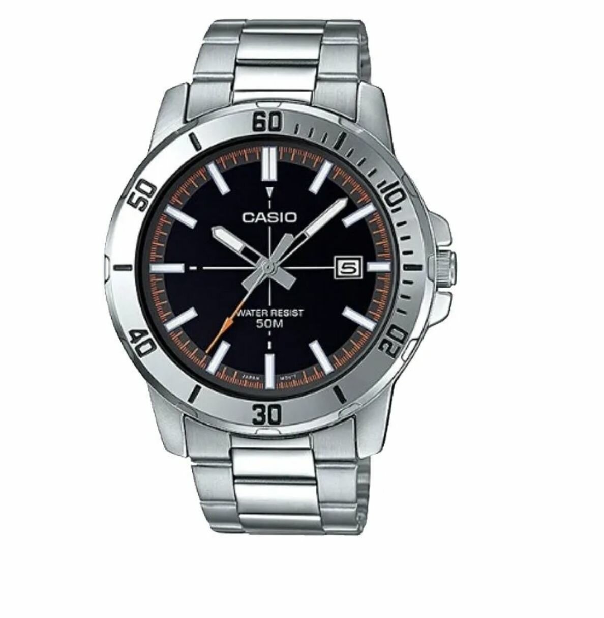 EFR-571D-1A Casio наручные часы кварцевые WR100 (10 атм) мужские серебряный, черный отображение числа подсветка стрелок минеральное стекло