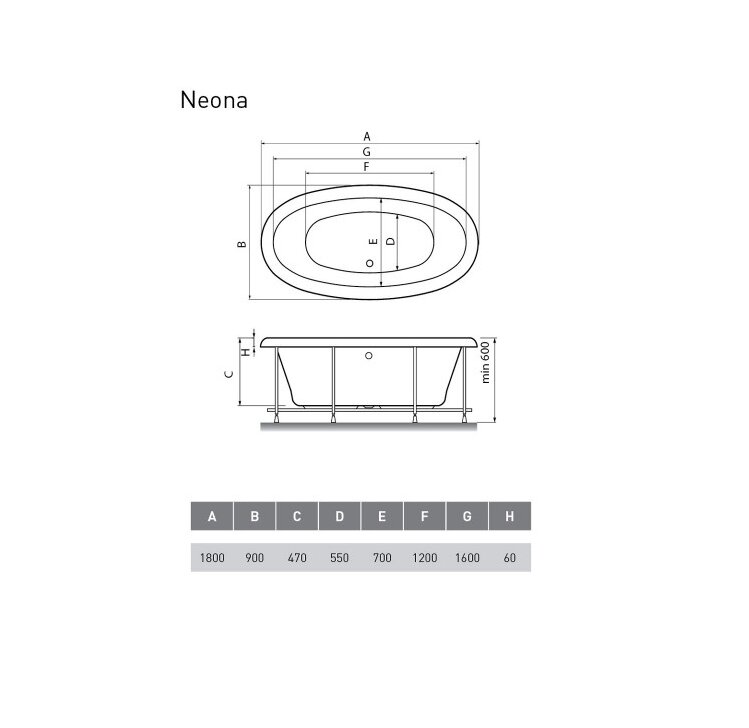 Ванна Relisan NEONA 180x90см отдельностоящая (Гл000000548) интересное: