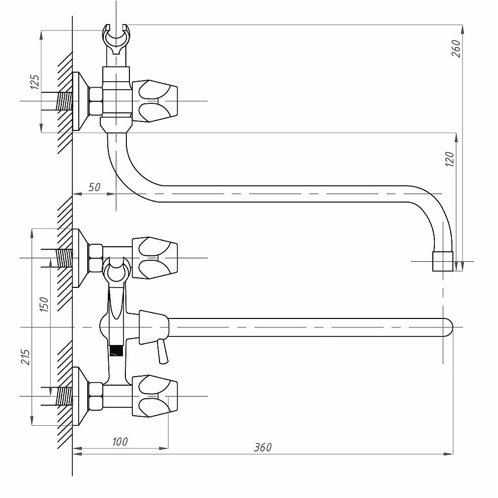 Смеситель для ванны и умывальника 1/2 кер ПСМ-157-48 евро тип см-вудрншла, экс "евро",крест