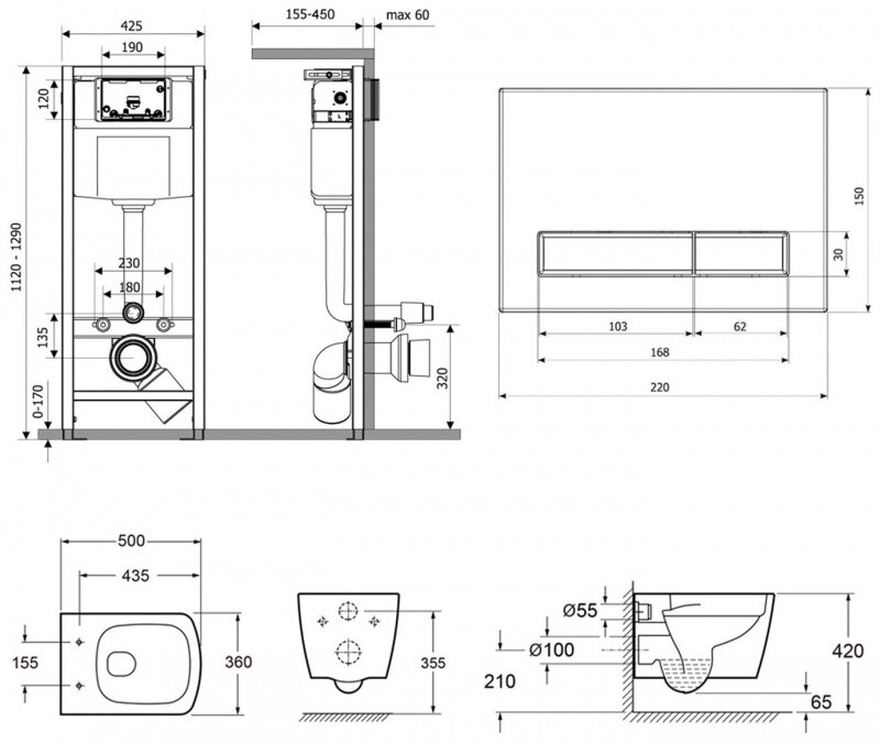Подвесной унитаз комплект 6 в 1 Lavinia Boho Aveo Rimless 77050208: унитаз, сиденье микролифт, инсталляция, кнопка, шумоизоляция