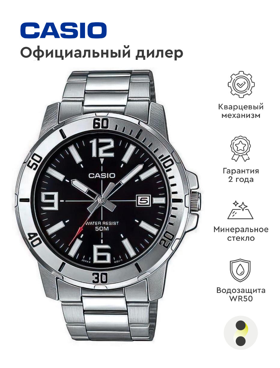 Наручные часы CASIO MTP-VD01D-1B, серебряный, черный
