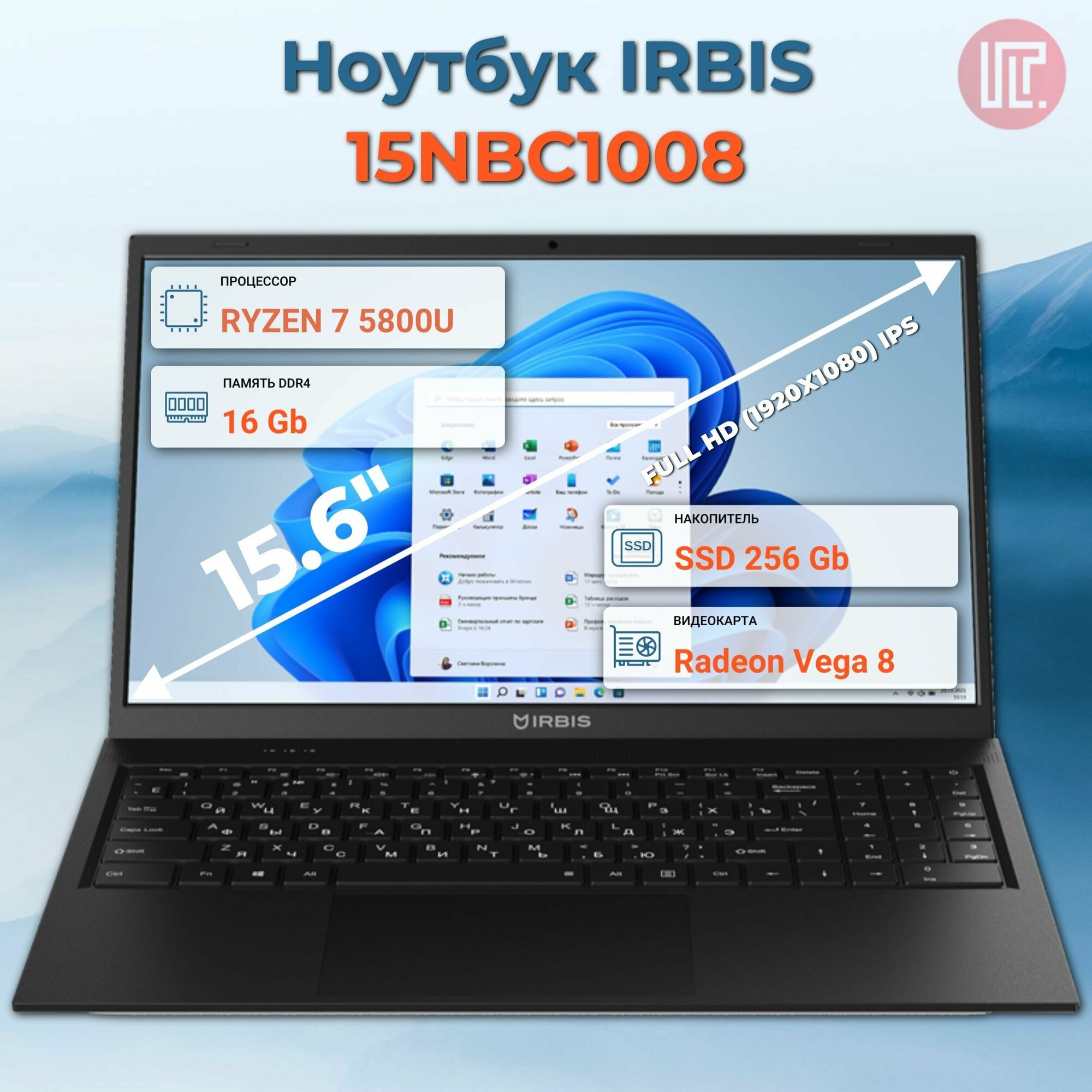 Irbis 15NBC1008 15.6" AMD Ryzen R7 5800U, 15.6"LCD 1920*1080 IPS , 16+256GB Ssd, Front, AC Wifi, Cam