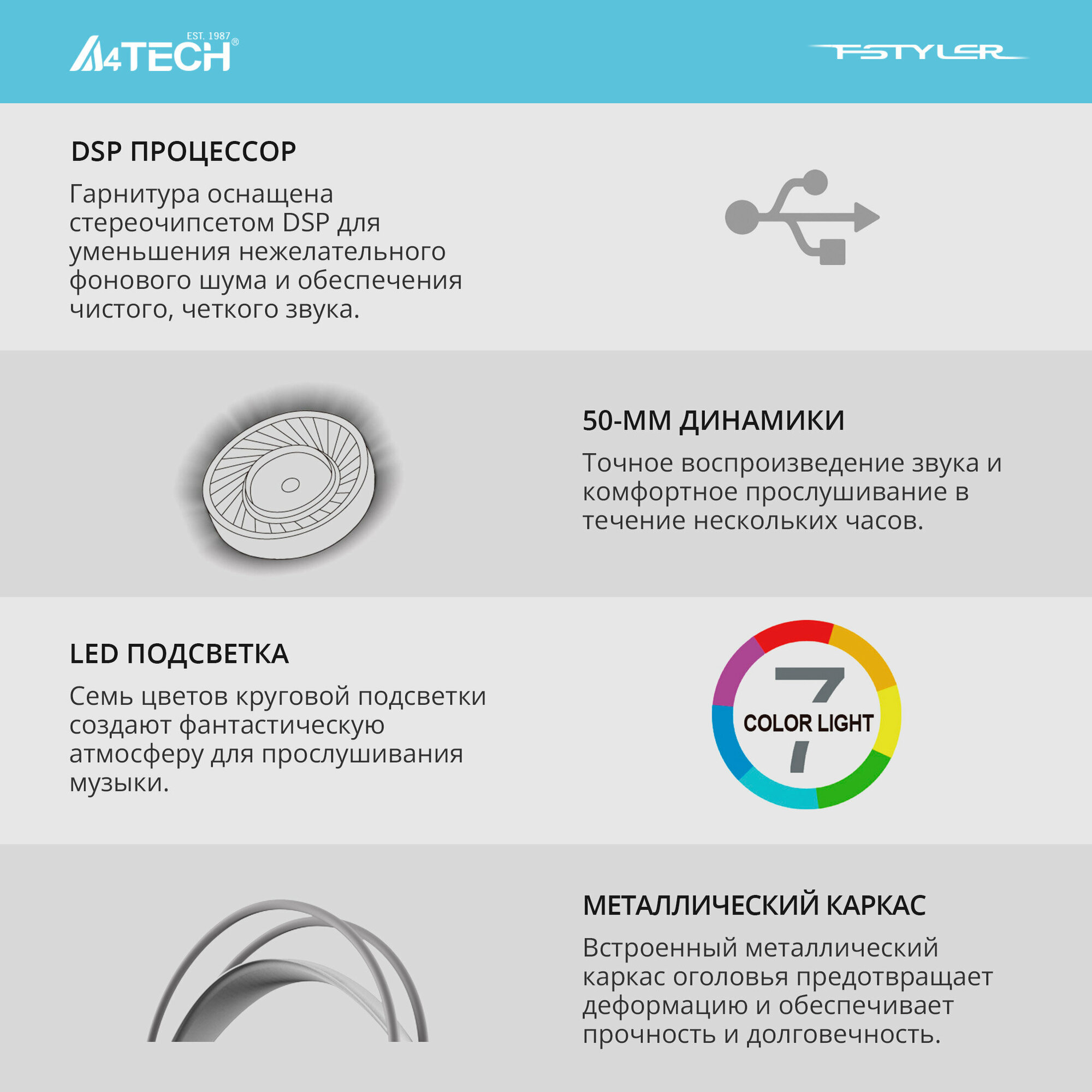 Гарнитура A4Tech Fstyler FH300U белая, USB, 2м, закрытые, оголовье 1855065