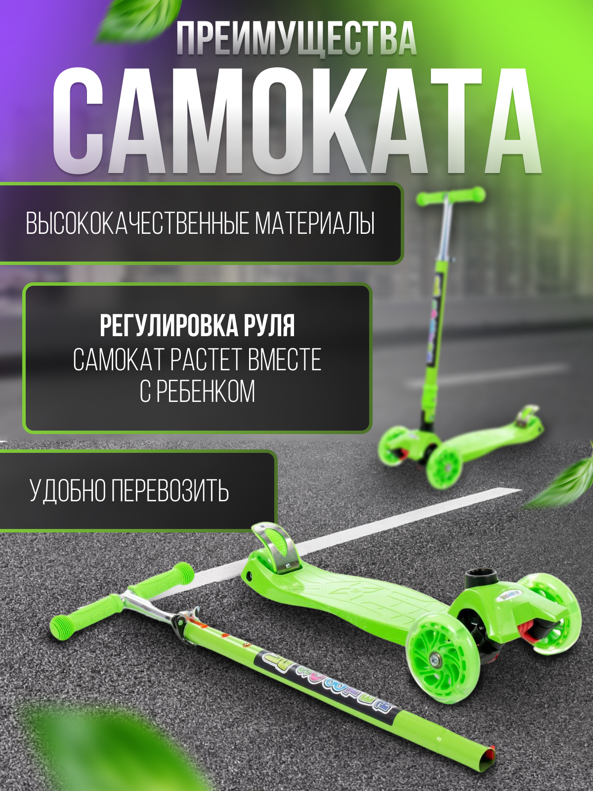 Купить Детский 3-колесный городской самокат Полесье 0072, зеленый