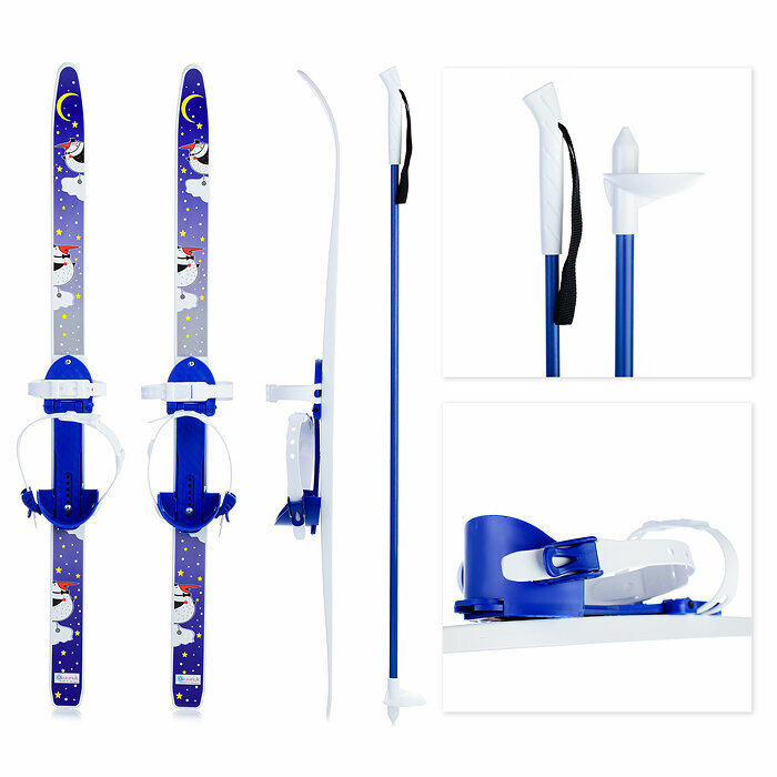 Лыжи детские Быстрики Пингвины 90/90 см, универсальное креление, с палками стеклопластик Олимпик 6674-00(МПЛ116.00)