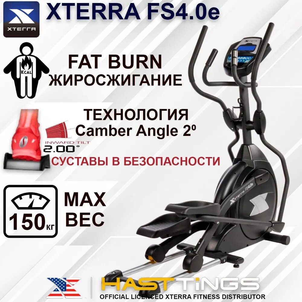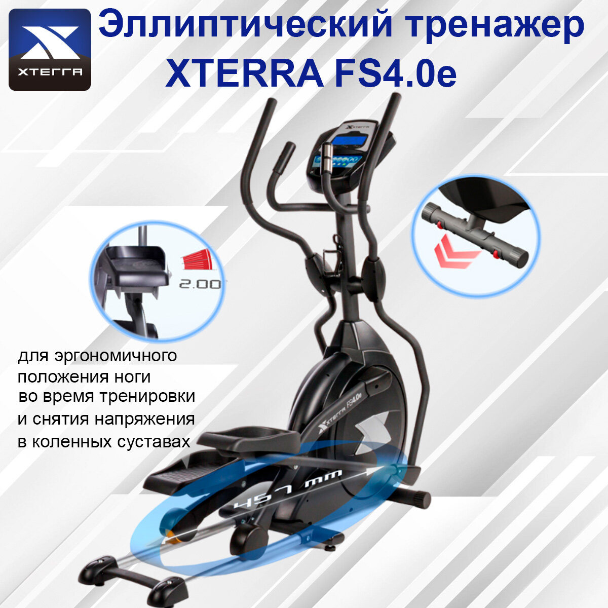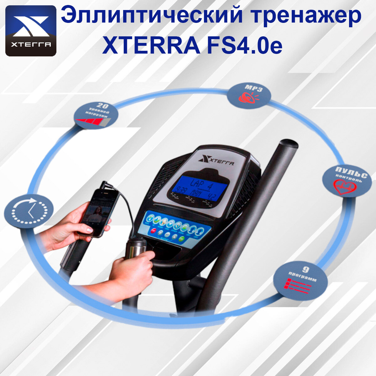 Эллиптический тренажер Xterra FS4.0e-до150 кг/жиросжигание/защита суставов/шаг 46 см/20 уровней сопротивления/10 кг вес маховика/9 программ интересное: