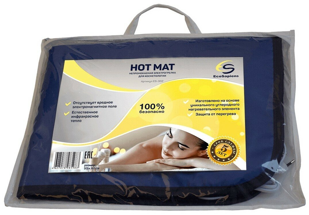Электрогрелка влагонепроницаемая для косметологии EcoSapiens Hot Mat 50х80 см, автоотключение до 8 часов