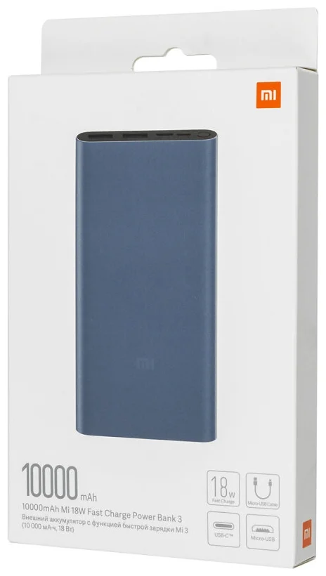Портативный аккумулятор Xiaomi Mi Power Bank 3, 10000 mAh, серебристый, упаковка: коробка