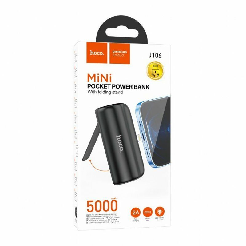 Повербанк Hoco для iPhone, 5000mAh, черный, компактный, с подставкой и индикатором интересное: