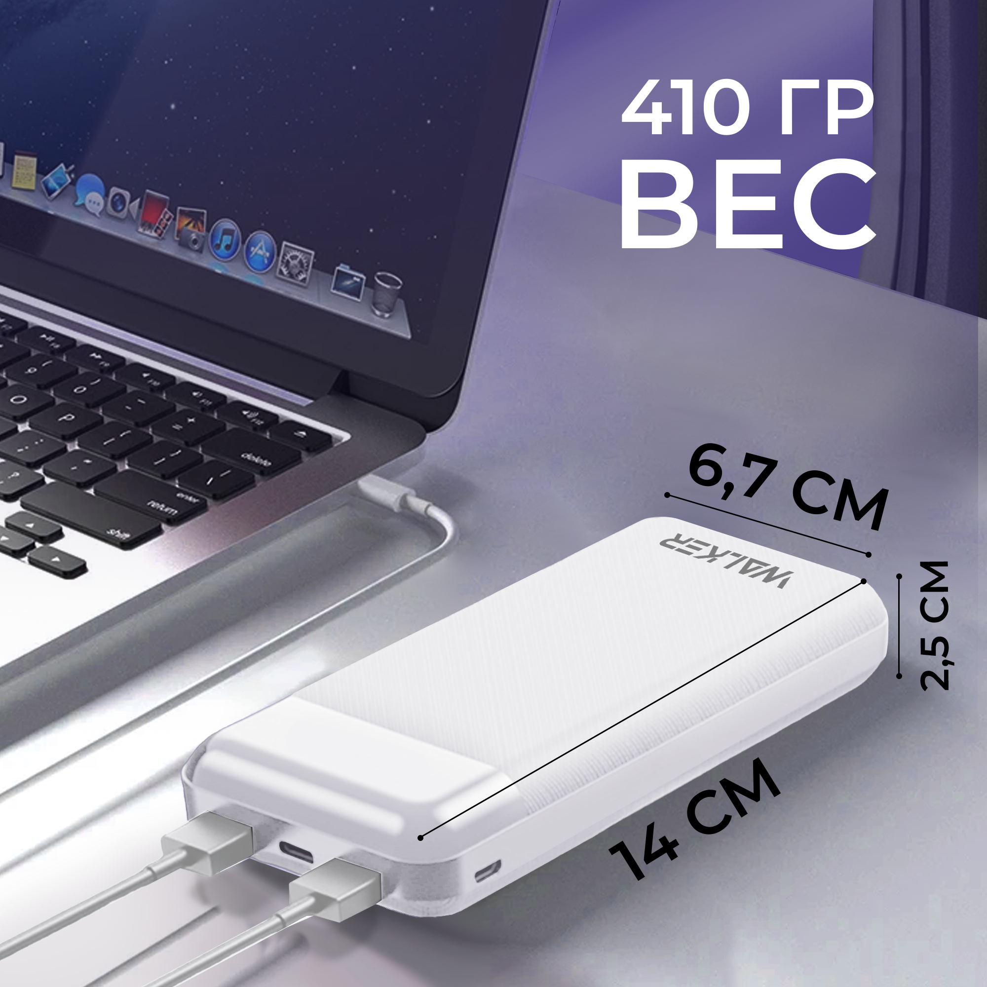 Повербанк для iphone 20000 mAh WALKER WB-525 power bank для телефона, внешний аккумулятор на honor, пауэр банк для redmi, пауэрбанк для xiaomi, белый