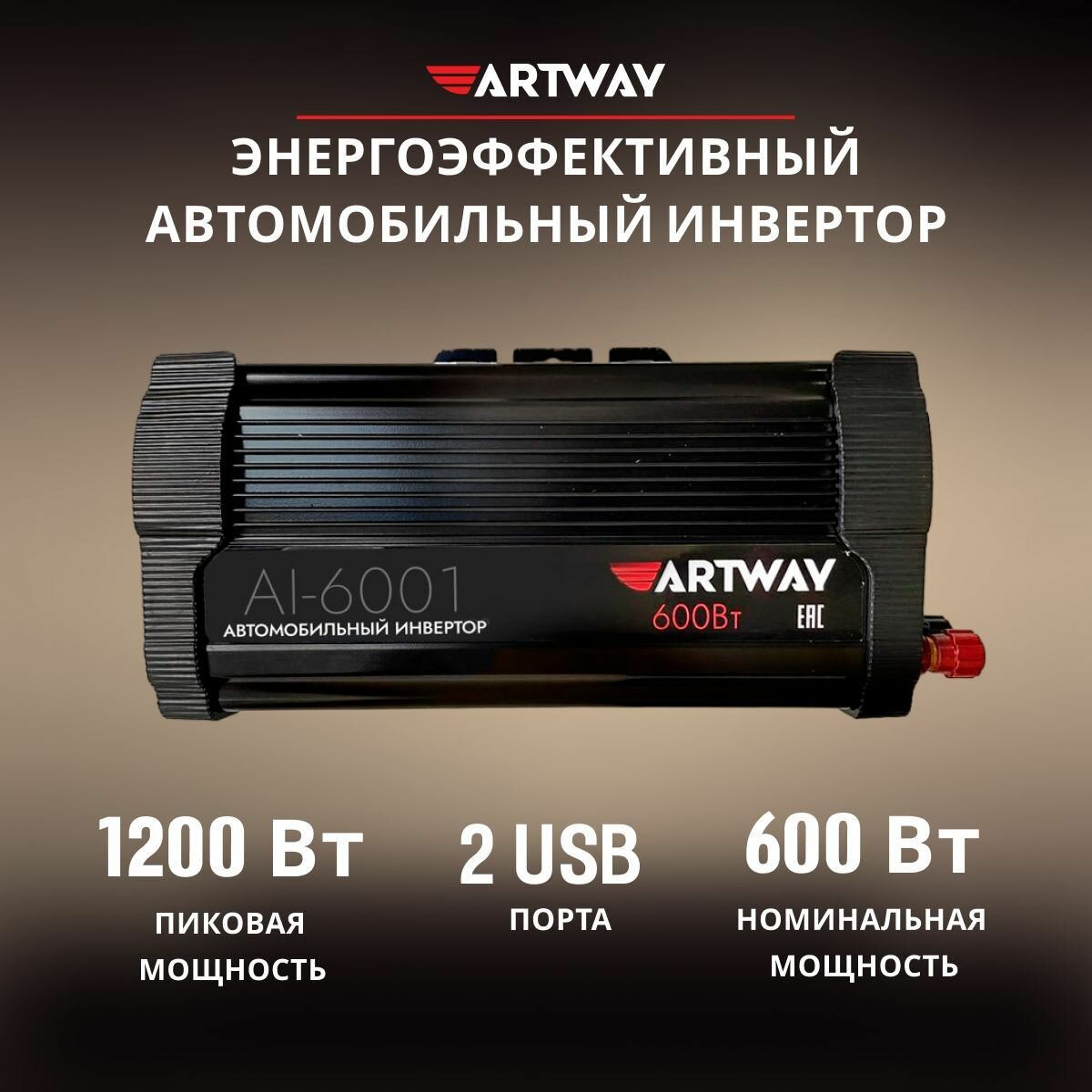 Инвертор автомобильный Artway AI-6001 преобразователь напряжения 12В в 220В интересное: